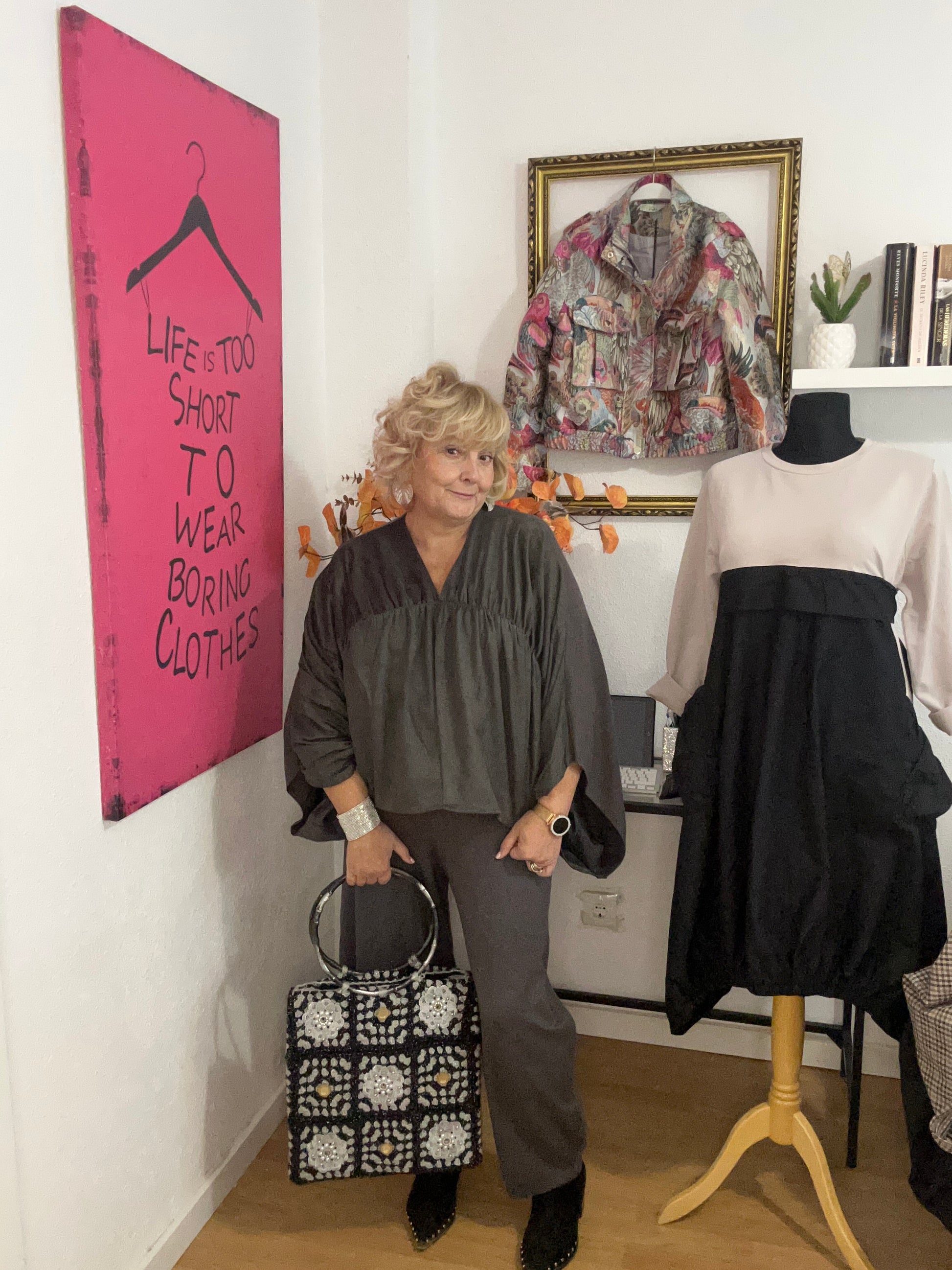 Bolso tejido a mano en crochet con pedrería en la parte delantera, y liso en la parte posterior. Las asas de madera decapadas en los mismos colores. Un capricho.
