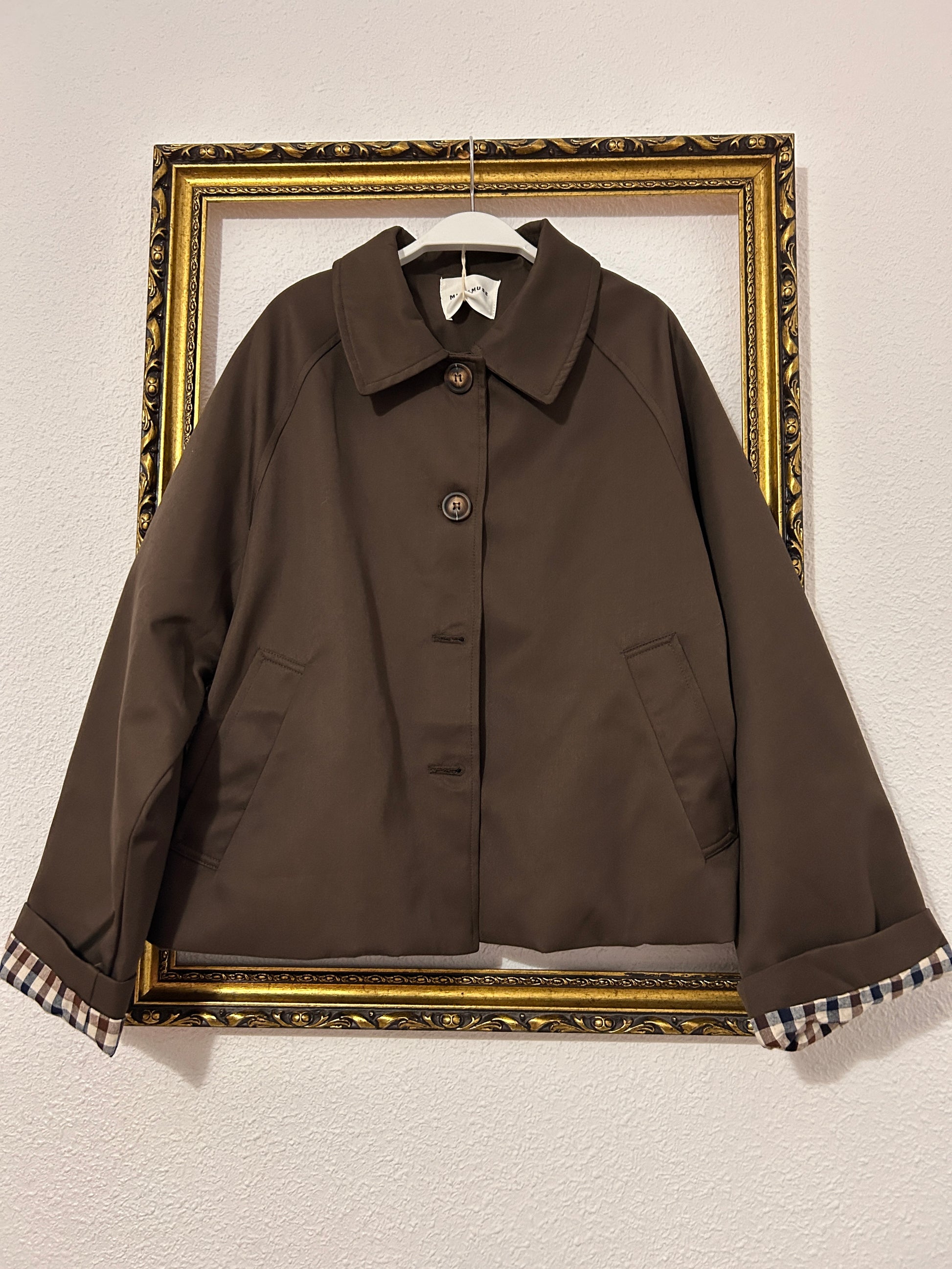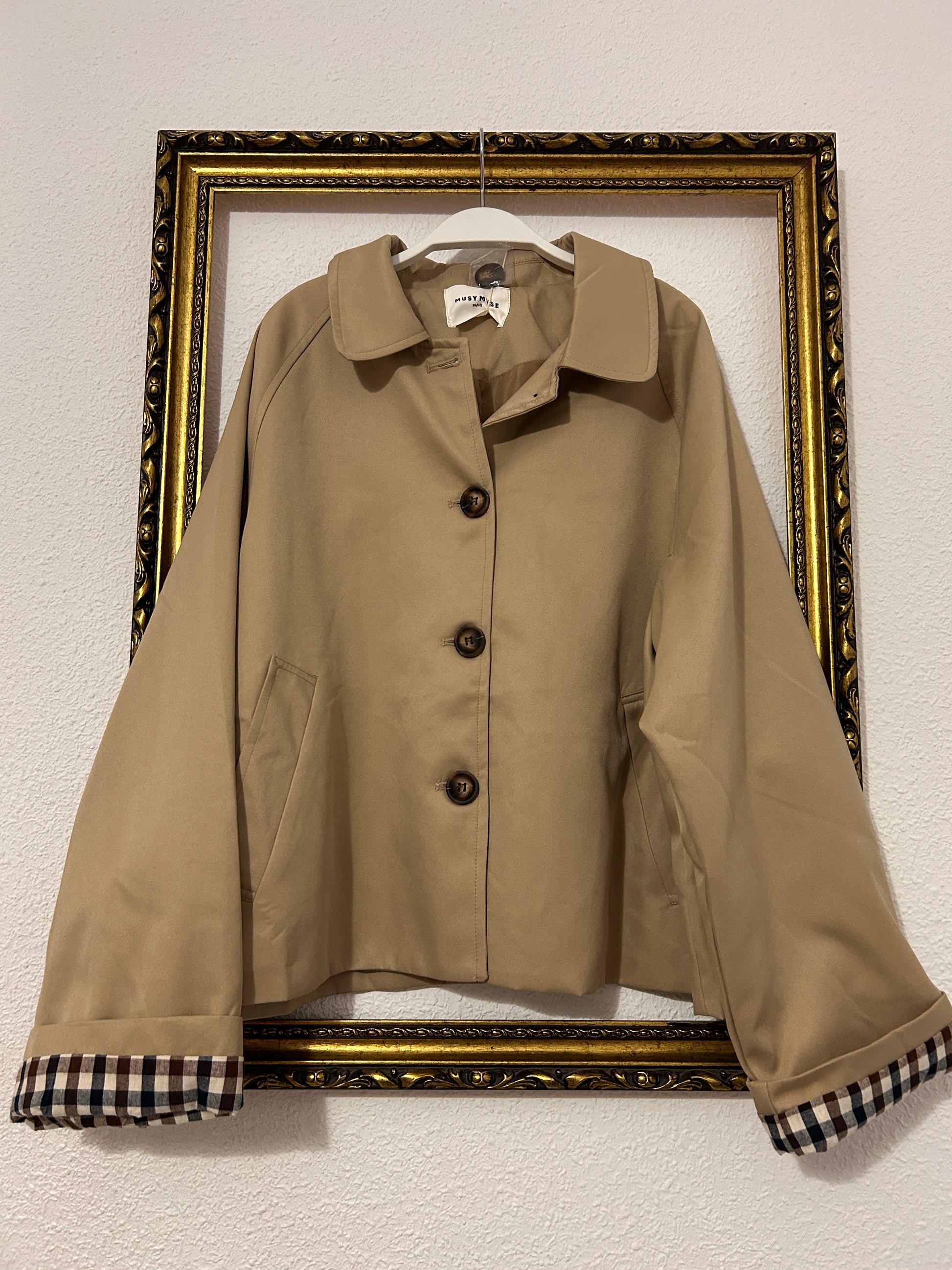 Gabardina corta en algodón y poliamida, ligeramente evasé, y bolsillos laterales. Talla única, desde una 50 hasta una 46.