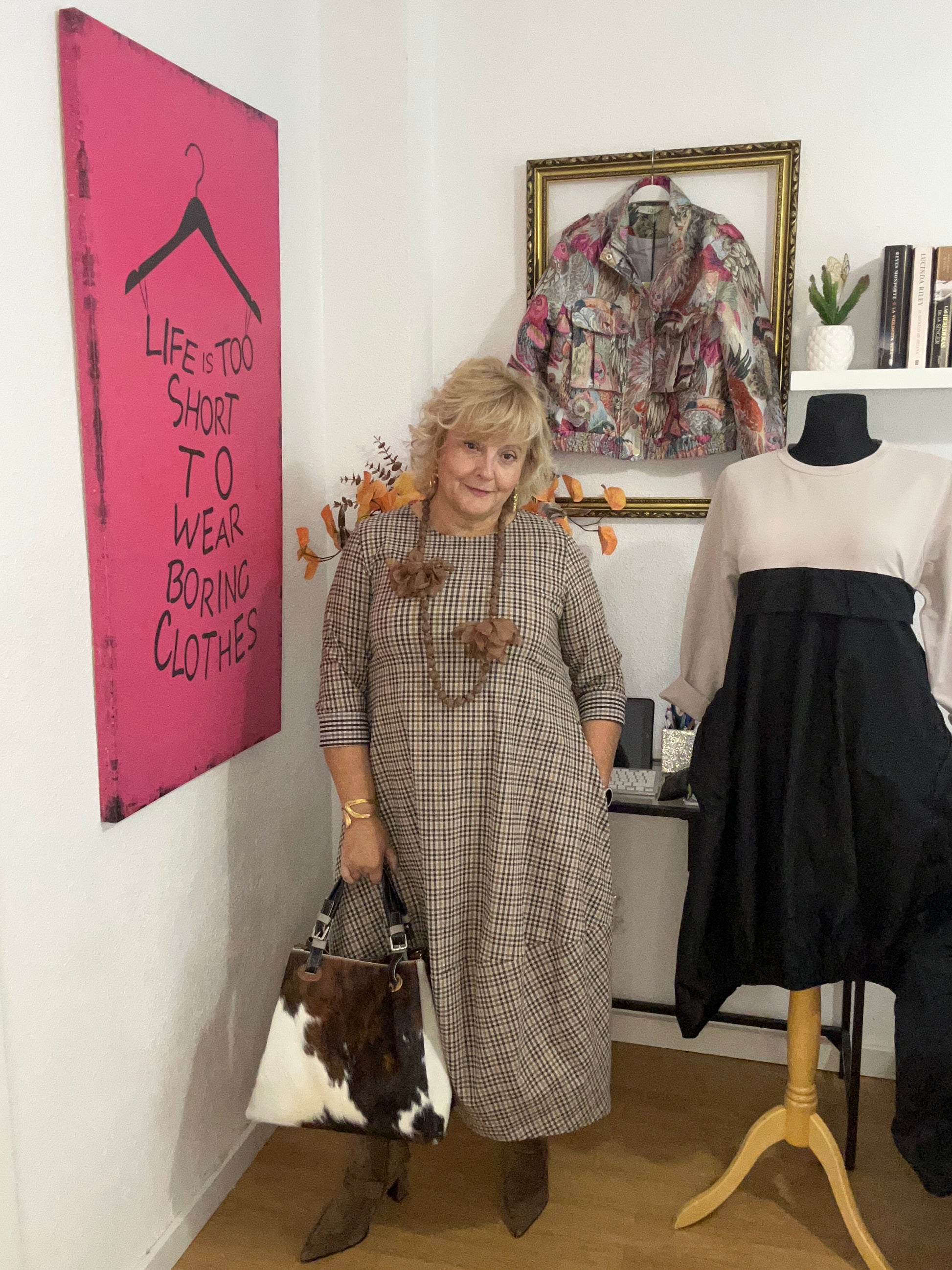 Vestido Wendy trendy en algodón y elastán, largo midi, forma de globo, bolsillos laterales y estampado en cuadro vichy súper tendencia. Es talla única da desde una 42 hasta una 48